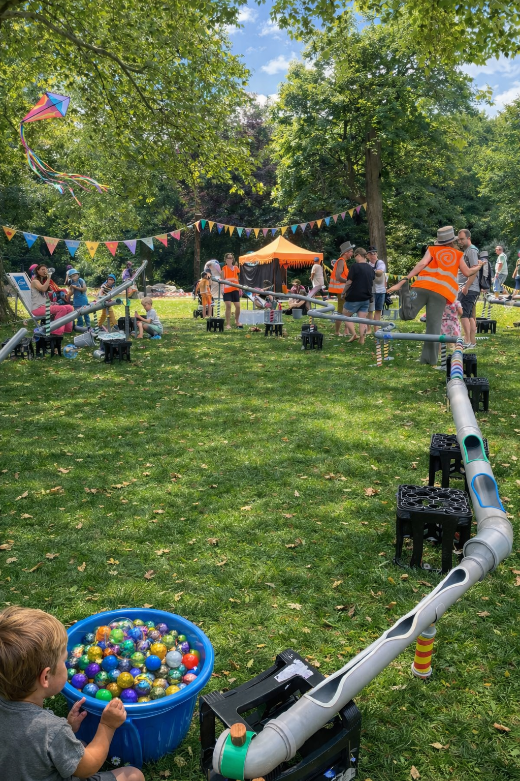 Gemeinsam mit anderen eine riesige Murmelbahn aus Sand und Rohren bauen! Zwei Tage lang tüfteln, testen und kreativ sein – für Groß und Klein. Kommt vorbei und lasst die Murmeln rollen!