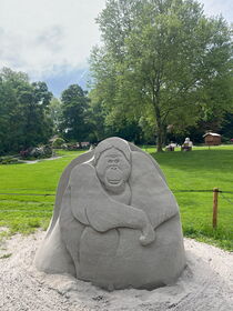 Unlike loose beach sand, professionals use sharp-edged, angular sand that can be tightly compacted – making the figures stable. Around 30 tons of sand are pressed layer by layer before carving begins, working from top to bottom. A protein-based, biodegradable protective solution additionally shields the sculptures from rain.